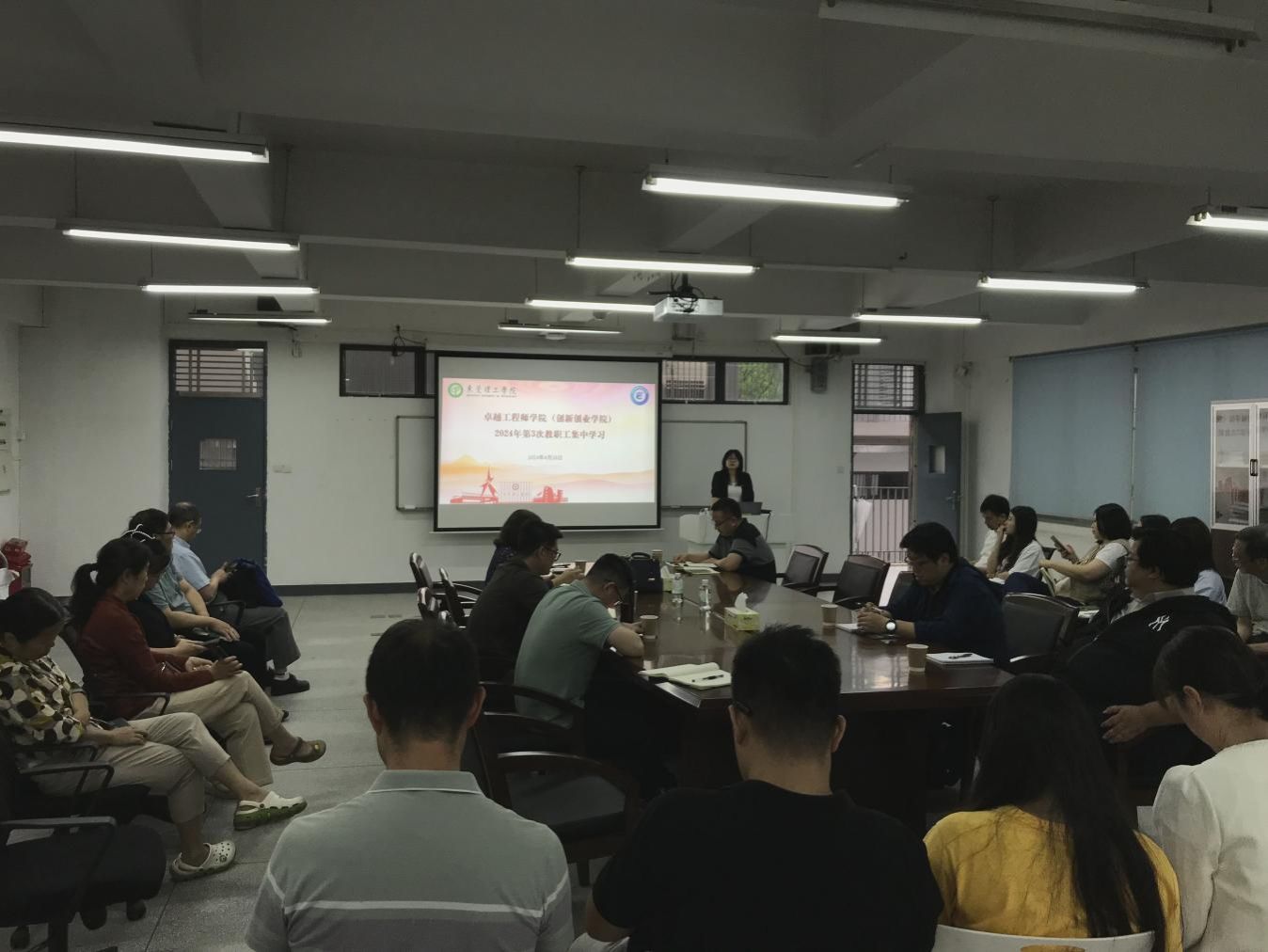 4月28日下午,卓越工程师学院(创新创业学院)在现代教育楼7A203会议室召开了2024年第3次教职工政治理论学习会,会议由学院党委副书记、纪检委员张敏主持,全体教职工参加。
