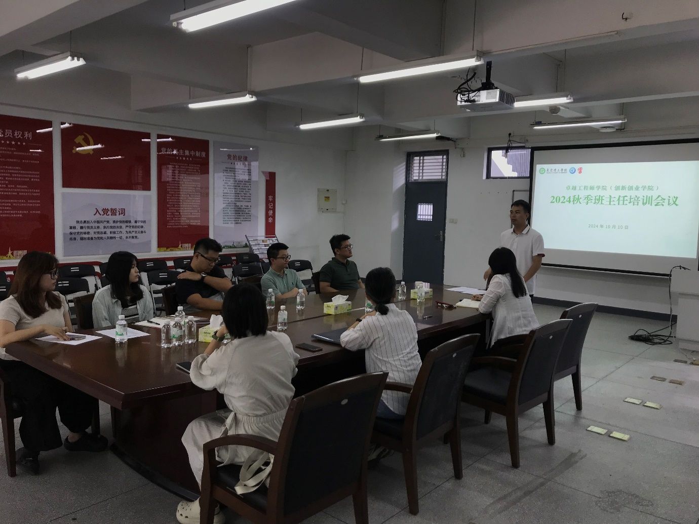 2024年10月10日下午,卓越工程师学院(创新创业学院)在会议室7A-203召开班主任工作会议,主题为开展班主任学生心理访谈专题业务培训,出席会议有党委副书记张敏、全体辅导员以及全体班主任,张敏主持会议。