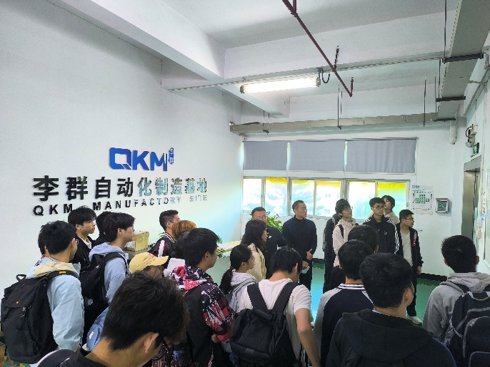 2025年12月16日,东莞理工学院卓越工程师学院(创新创业学院)师生一行30余人学生走进东莞李群自动化制造基地,开展 “与龙头企业同伴,与领先行业同行” 主题研学活动,近距离感受工业机器人领域的前沿技术与产线实践。