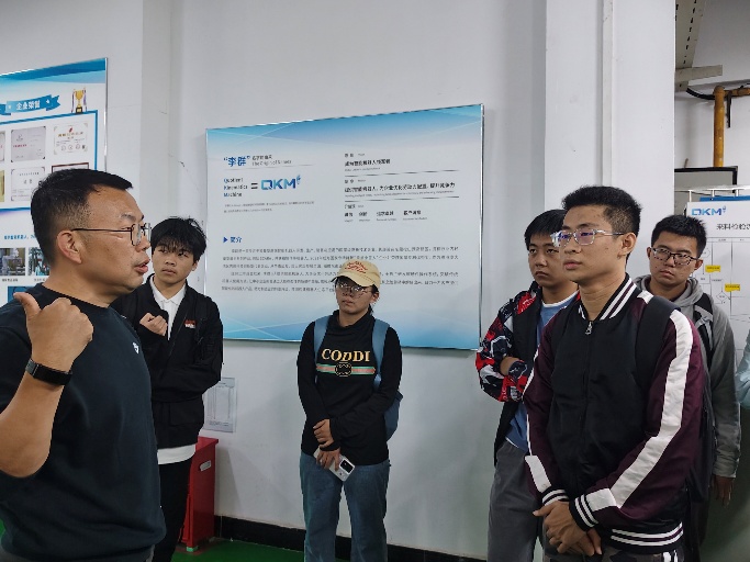 活动中,李群自动化公司负责人黎总率领团队全程接待,带领同学们开启了一场 “理论 + 实景” 的智能制造体验之旅。从企业业务与发展背景切入,黎总详细介绍了李群在轻量型工业机器人领域的技术布局。