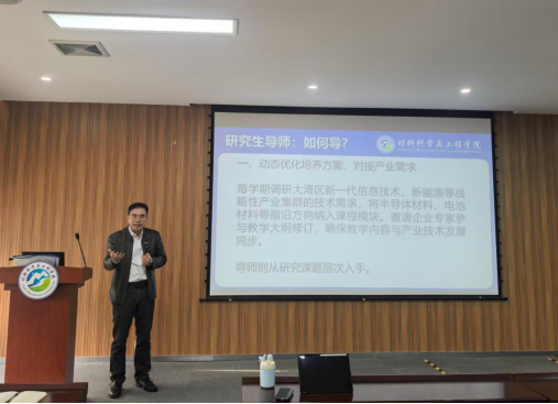 陈德良教授概括地介绍了公司情况,强调公司产品重要性,并针对公司产品质量提升的问题提出三大方向:一是动态优化培养方案,对接产业需求;导师则从研究课题层次入手。二是创新产学研协同机制,强化实践培养;导师则需考虑如何协同基础研究与应用研究的关系。三是深化过程评价改革,突出创新导向;导师则要完全放手,务必培养研究生独立解决复杂问题的创新能力。