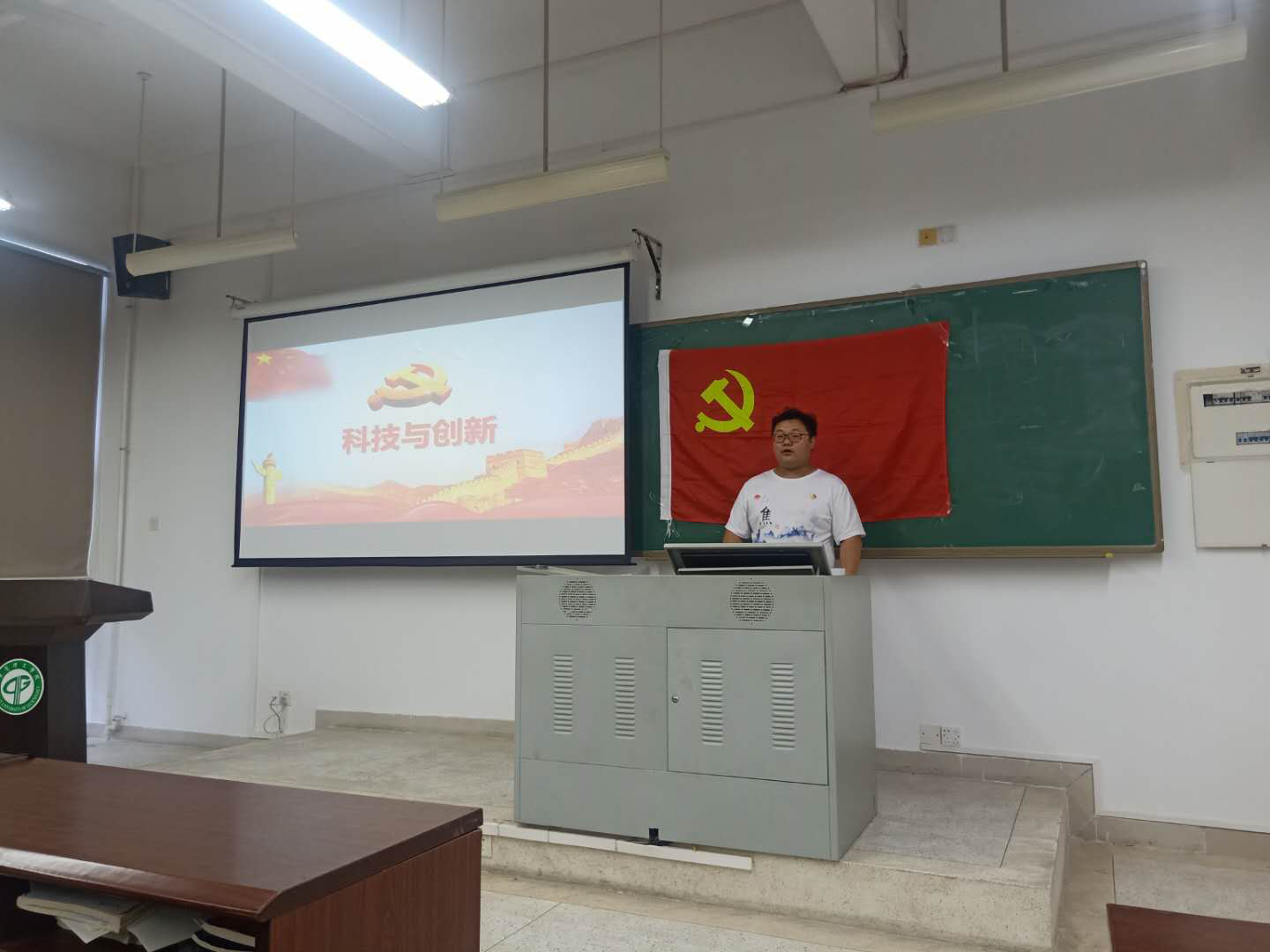 会议开始,焦帅由我国近年来科技创新发展所取得的一系列成就引出了“科技与创新”这个话题,引发了入党积极分子们的热烈讨论。每个小组都派代表上台发表了组内的讨论成果。其中,第一组的代表结合了自己专业的实际情况表示,材料进步对于其他科技的进步是极其重要的,并且要认识了解材料,才能改造材料,进行材料的创新。第二组代表回味了电影《厉害了我的国》中介绍的中国路,中国桥,中国港,中国车,中国网等等我国近年所取得的一系列成就,表达了自己要努力钻研,为祖国的创新发展贡献自己力量的自豪之情。第六组代表回顾了党的十八大以来我们国家取得的众多成就以及制定的一系列重要制度,表明了自己要增强动手能力,培养创新思维的决心。