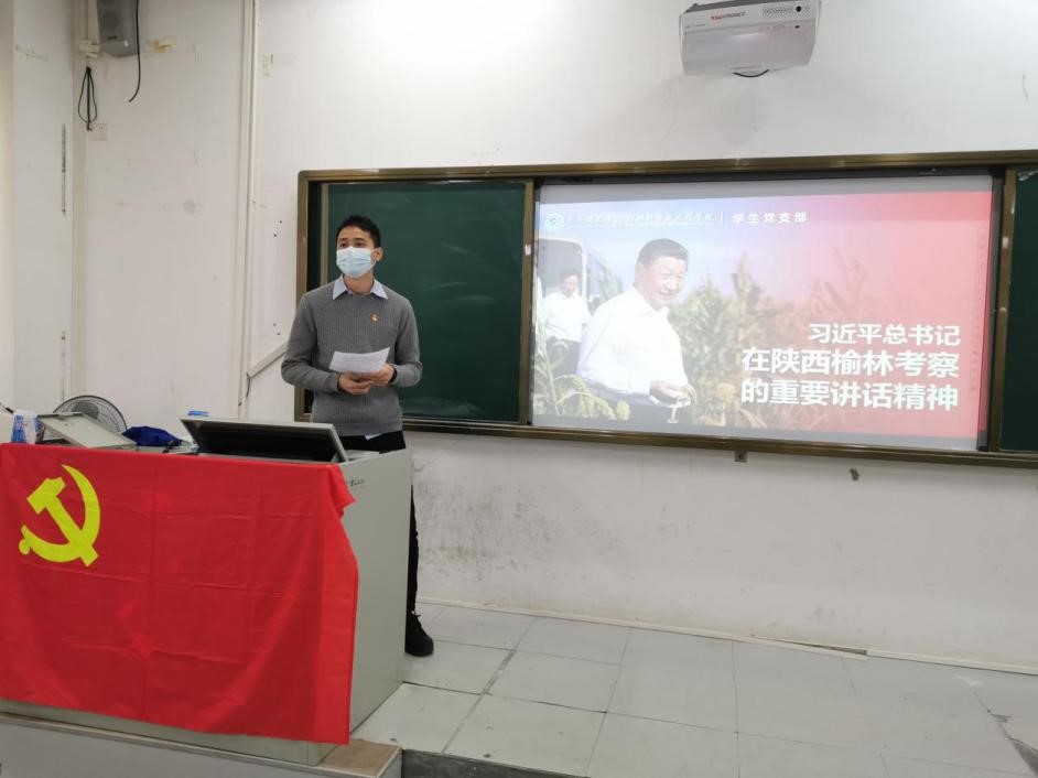 会议伊始,支部书记杨壮鹏带领全体党员学习《习近平总书记在陕西榆林考察的重要讲话精神》。杨老师指出对习近平总书记在讲话中提到的推进煤炭消费转型、加强科技创新等领域,我们要充分结合并发挥专业优势,提高专业本领,攻坚克难,切实做到“我为群众办实事”。