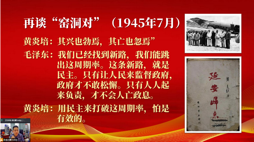 员工第一支部书记杨壮鹏同志在领读过程中,对贺词中提到的“窑洞对”背后的革命典故进行了非常生动的阐述,他强调了人民民主专政制度在中国社会主义制度中的根本性意义,并结合当下疫情形势,号召广大党员深刻体会中国共产党立党为公、执政为民的执政理念,充分认识社会主义制度的优越性,不断提升制度自信。