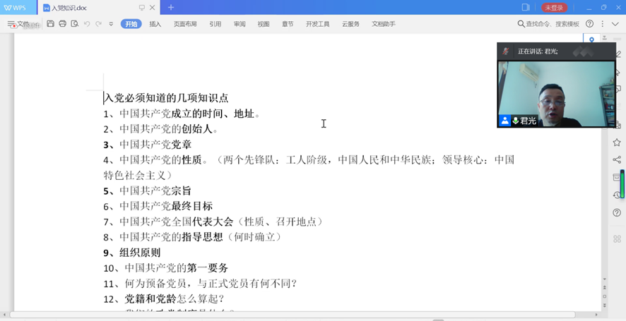 最后,君光书记讲解了入党需要掌握的十七点基本知识。