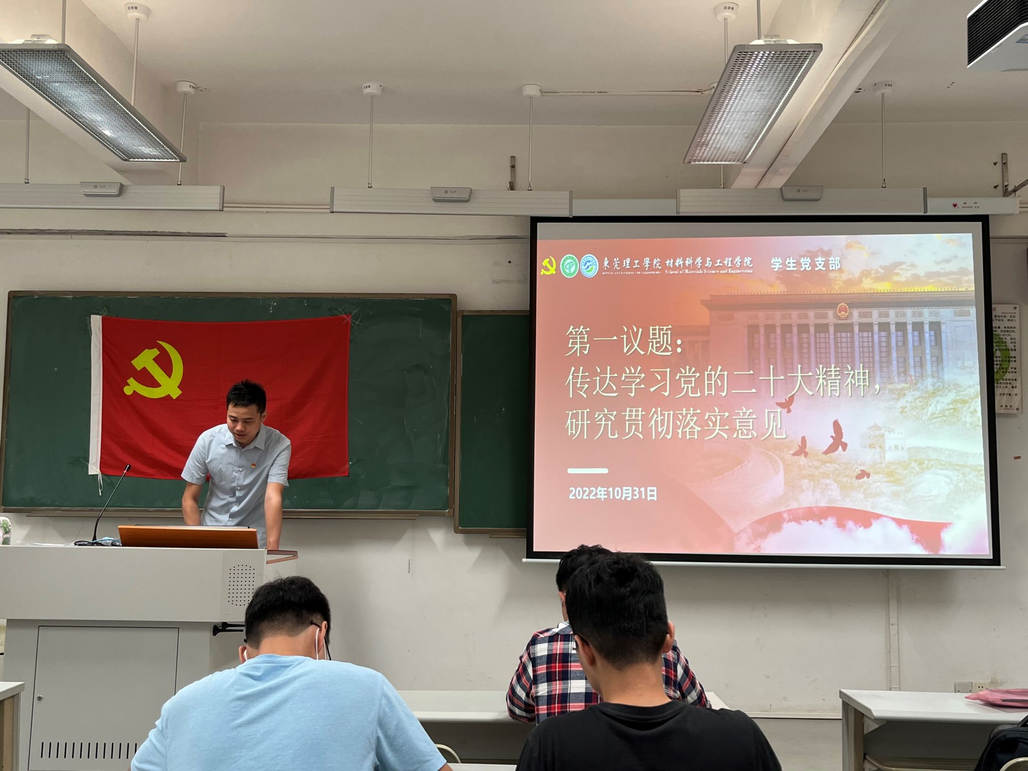 2022年10月31日,伟德国际1946bv官网员工第一、第二支部分别在教学楼6A308、6B302教室召开支部大会,学习党的二十大精神,研究贯彻落实意见,并讨论陈舒鑫等16名同志加入中国共产党事宜。会议由各支部书记主持。