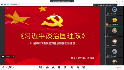 员工党员区伟聪带领大家一起研读《习近平谈治国理政》(第四卷)之第十三部分——以保障和改善民生为重点加强社会建设,他结合“构建强大的公共卫生体系”“以共建共治共享拓展社会发展新局面”“培养担当民族复兴大任的时代新人”“促进我国社会保障事业发展”“发扬冬奥精神、加强建设体育强国”五个内容进行分析,强调了卫生健康事业同国家发展紧密衔接,并指出教育是国之大计、党之大计。