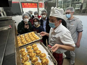 活动第三环节,两支部党员开展“学二十大精神,展劳动育人风范”主题党日活动——《后勤烘培课堂》,员工党员在烘焙师傅的指导下学习制作椰蓉蛋挞,活动中气氛温馨活跃。活动结束后,党员师生纷纷表示本次共建活动非常有温度、有特色、接地气,活动烧旺了党内政治生活炉火,有回味更有“党味”。
