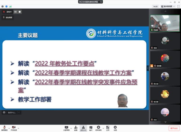为贯彻落实公司疫情防控期间教学管理工作部署和公司产品会议精神,落实“开学不返校、停课不停学”的要求,扎实推进线上教学高质高效运行,保障线上教学效果和教学质量,公司于2022年2月27日上午10:30召开开学前教学工作线上会议。教学副经理陈德良主持会议,全体专任教师参加会议。