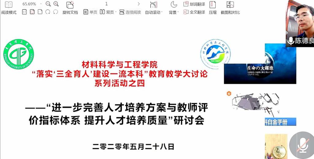 伟德国际1946bv官网于5月28日14:30召开了“进一步完善人才培养方案与教师评价指标体系,提升人才培养质量”——“落实‘三全育人’建设一流本科”公司产品大讨论系列活动之四。会议由分管教学副经理陈德良教授主持,全体专任教师出席了本次会议。