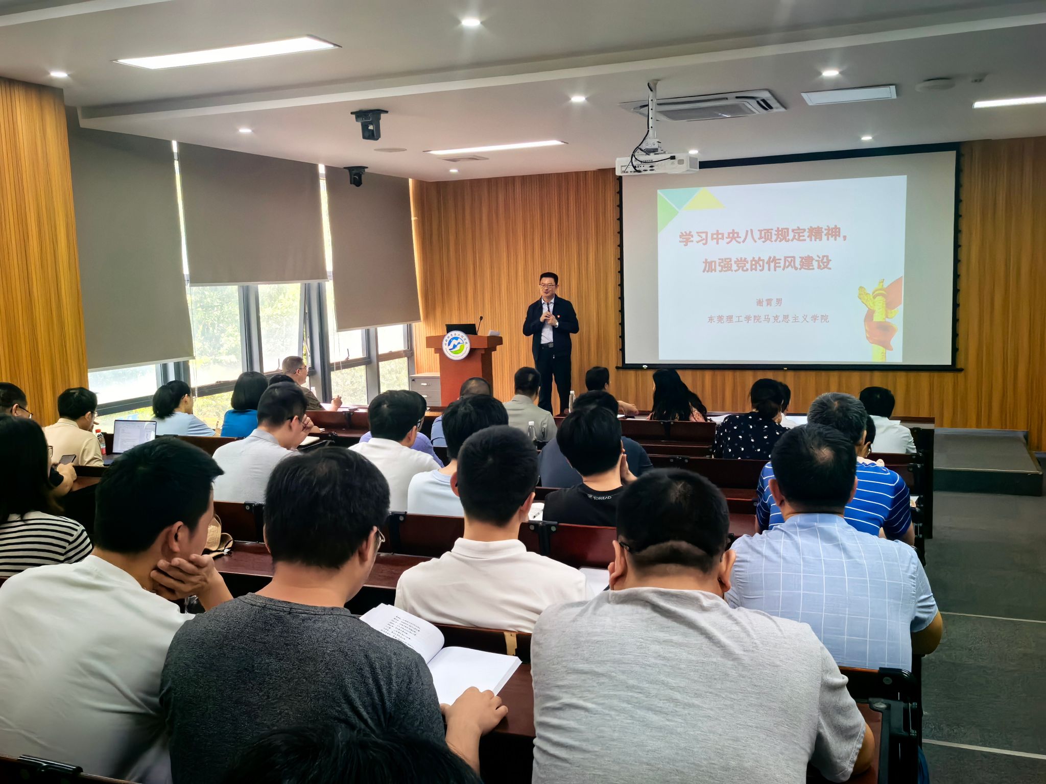 4月24日下午,​伟德国际1946bv官网在材料楼4B212开展学习贯彻中央八项规定精神宣讲报告会。报告会由马克思主义公司党委副书记谢霄男教授主讲,公司党委书记陈宝华主持会议,全体教职工参加会议。