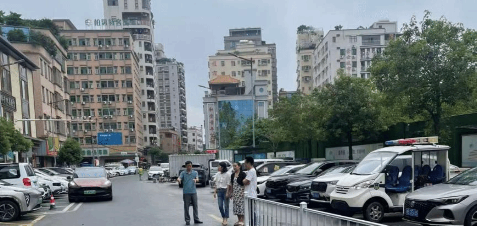 佛子凹村地处大朗镇西南部,毗邻松山湖科技产业园区,区域面积1平方公里,居住人口近2万,外来暂住人口超1.5万。该村在基层治理中面临突出交通难题:村主干道狭窄且占道经营频发,停车位紧缺、可建设用地匮乏,导致该村交通治理难度大。