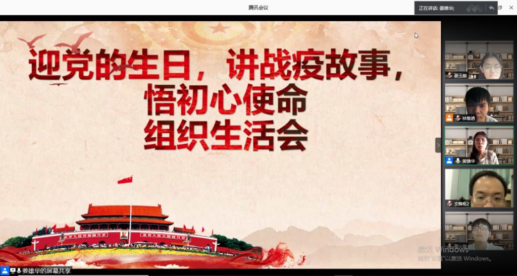 会议第三项,开展“迎党的生日、讲战役故事、悟初心使命”组织生活会。首先姜雄华书记表示疫情还没结束,大家还要注意,坚持防护;同时也分享对电影的观后感。然后徐老师、文老师、党员们都接连发表感想。每个党员都分享了自己近期的想法和学习,最后也一致表示会奉献自己的力量去建设好员工支部,组织交代的任务会尽全力的完成。