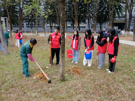 全体师生在现场工作人员的带领下,倾力投入到桃李园和员工林的绿化工作中,开展了除草、施肥、修枝和园林设施维护等工作,用实际行动诠释了师生党员的责任担当精神。