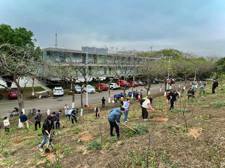 为深化绿美莞邑建设,提升师生党员参与生态文明建设的思想自觉和行动自觉,3月7日,公司党委、总务后勤党委在松山湖校区桃李园和员工林共同组织开展“绿美莞邑,党员先行”主题党日活动,公司党委书记陈宝华、总务后勤党委副书记袁荫贞、材料科学与工程系、金属材料与工程系和高分子材料与工程系教师党员代表以及员工支部师生参加了活动。