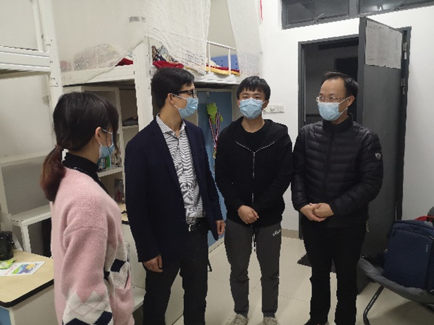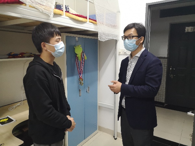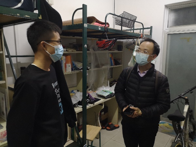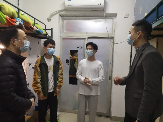 学工办主任文锦枢就同学们提出的关于疫情期间学习和就业等方面的疑惑做出耐心解答,叮嘱他们保持积极进取的精神状态,加强宿舍日常环境卫生和安全自我管理,养成良好生活习惯。