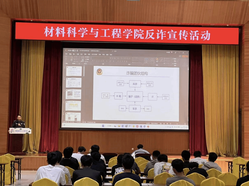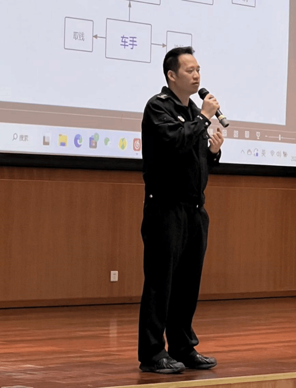 苏东阳警长在红棉派出所理工警务室任职多年,在一线防诈骗工作方面具备丰富的实战经验。在本次讲座中,苏警长从“诈骗团伙结构”“被骗原因分析”两方面进行防诈骗常识教育,并就近期常见实际案例解读,提高同学对防诈骗工作的重视,同时通过与在座的同学积极互动,提高同学们对电信诈骗识别能力。最后,苏警长告诫同学们不要有“一夜暴富”“天上掉馅饼”的贪图便宜心理,在日常生活中要注意保护个人资料信息,不可随意注册未知平台,泄露身份、手机号码、银行卡号等私人信息。如若遇到诈骗事件,则需多加防范或与辅导员、班主任、安保队伍和地方警长多加交流。