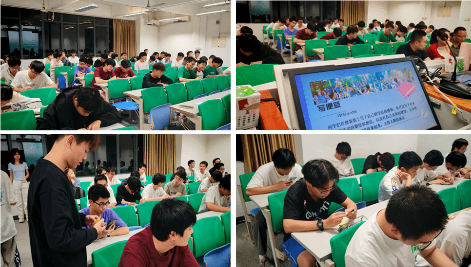 在心得分享互动环节,同学们将自己对未来的职业规划写在便签上,并随机抽取同学优秀榜样分享与提问。无论是关于未来目标还是个人感悟,都极大的引发了大家深刻的共鸣。