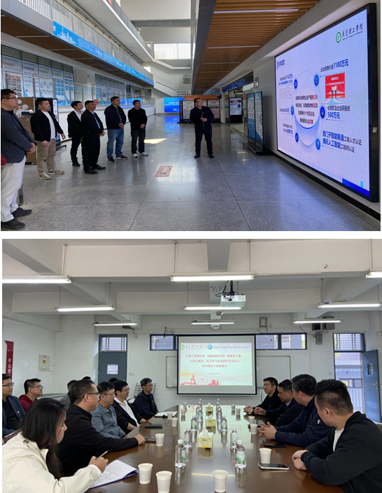 活动伊始,参观团队在我院教师党支部书记胡文龙的带领下走进现代教学楼一楼的工程实训中心。胡文龙书记详细介绍了学院的工程教育理念、人才培养模式、产教融合战略以及学生创新创业项目成果等。随后,大家深入到各个实训场景,听取实训项目指导老师对项目的教学设计及其应用前景的介绍。在此过程中,双方围绕项目成果落地推广展开了热烈的交流讨论。