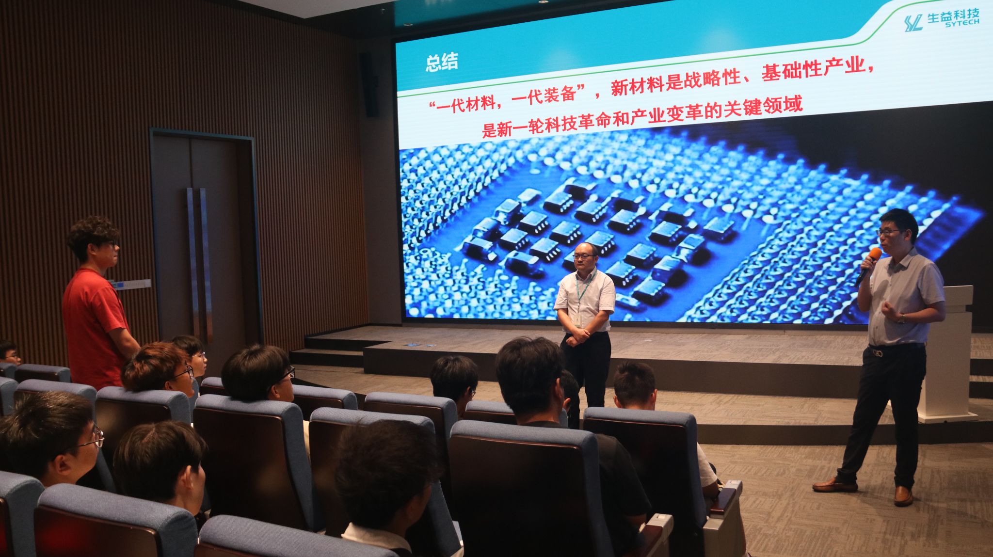 接着,师生参加了企业举办的专题讲座。现场,肖经理介绍生益科技公司的产业布局,强调公司十分重视科研投入和人才培养,同时出台诸多激励措施予以支持。会上,柴总也具体讲解了覆铜板的相关知识,分析了印刷电路板(PCB)及其配件研制和改进历程,讲述了覆铜板的构成、工艺流程、未来发展方向等。最后的互动交流环节,在场员工积极提问,企业代表认真解答。