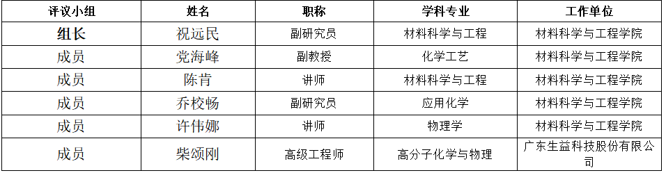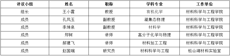 评议小组成员名单: