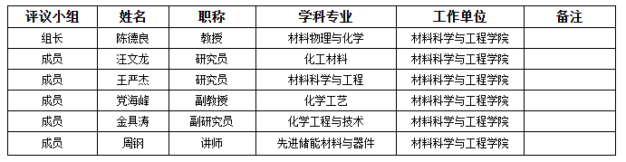 评议小组成员名单: