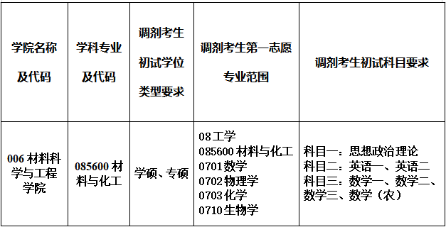 (四)第一志愿报考专业与调入专业相同相近,或初试科目与调入专业初试科目相同相近。接收统考英语一英语二、数学一数学二数学三、数学(农)的考生,学硕与专硕均可,且第一志愿报考专业学科类别为工学(专业代码前两位为08)、理学(专业代码前四位为0701、0702、0703、0710)。