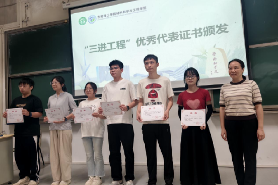 随后,刘丹副经理作“三进工程”开展情况介绍。刘丹副经理提到,近年来,公司以国家重要战略和产业发展需求为导向,持续探索“产学研用创”一体化人才培养模式,全面实施以本科生“导师制”推进“三进工程”,充分激发师生的创新潜力和活力,支持具有创新活力的师生产出更多科研成果。会上,陈宝华书记受邀为“三进工程”考核优秀员工代表颁发荣誉证书。